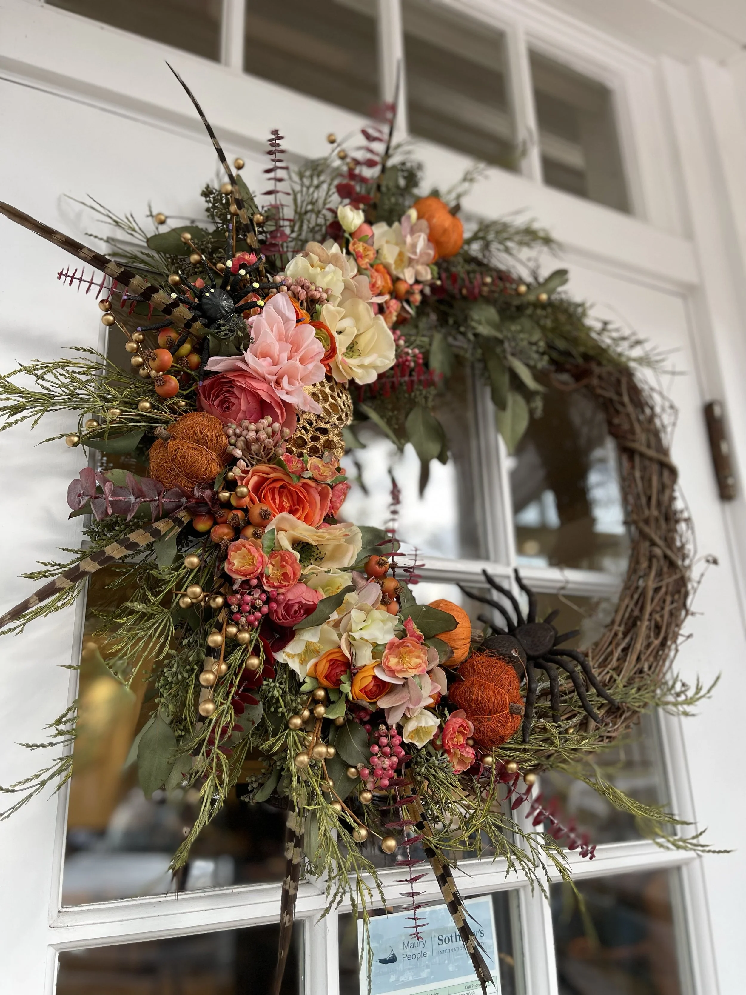 Meet Jenny and Kenia! The leads for this category are responsible for creating the beauty behind each wreath. They use fresh or faux flowers, glue guns, and even add woodland décor, birds, cardinals, lights, or a spooky spider for Halloween. These handcrafted decorative rings are made from live, aromatic greenery and natural materials, offering a vibrant and scented alternative to artificial decorations. They are commonly used for seasonal décor, especially during the holidays, on front doors, walls, or as centerpieces.